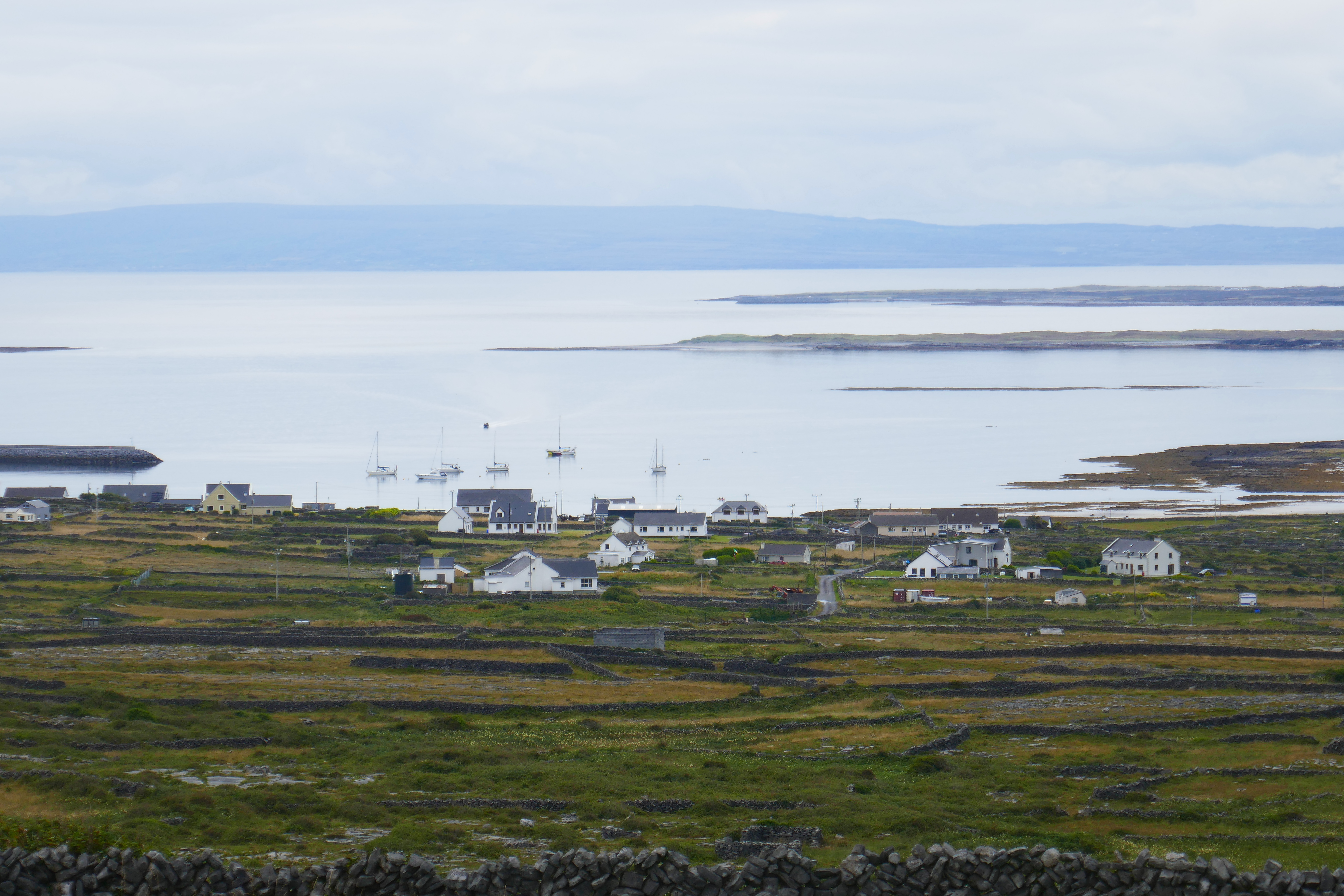 | Dinsdag 23 juli 2024 | RossavealVanmorgen met de dinghy naar de wal op Inishmore. Boodschappentas geparkeerd bij de duikschool, gerund door een Zuid-Afrikaan. Daarna, best wel onvoorbereid gaan wandelen, wel wat water mee maar geen eten... ik ben meer dan 30 jaar terug in de tijd. De overheersende kleur is grijs, de uitstraling is vervallen en armoedig. De velden zijn klein en omheind met drystone walls. De mensen zijn extreem aardig, dwalend op zoek naar een monument, een stem vanaf een dak: "You looking for the church?". Eigenlijk wist ik dat niet zeker, alle minieme aanwijzingen zijn in Gaelic. De geschiedenis is hier tastbaar, Cromwells army had de kerk vernietigd. Terug in de haven was de eb wat ebbiger dan ik had verwacht, moest dus een eind slepen. De ferries hadden hele kuddes toeristen gedumpt, dit is dus vooruitgang. Foto van de haven, welke boot ligt het verste weg (en heeft geen buitenboordmotor?). Stiekum overgestoken naar Rossaveal, hoofdzakelijk voor diesel en water. |