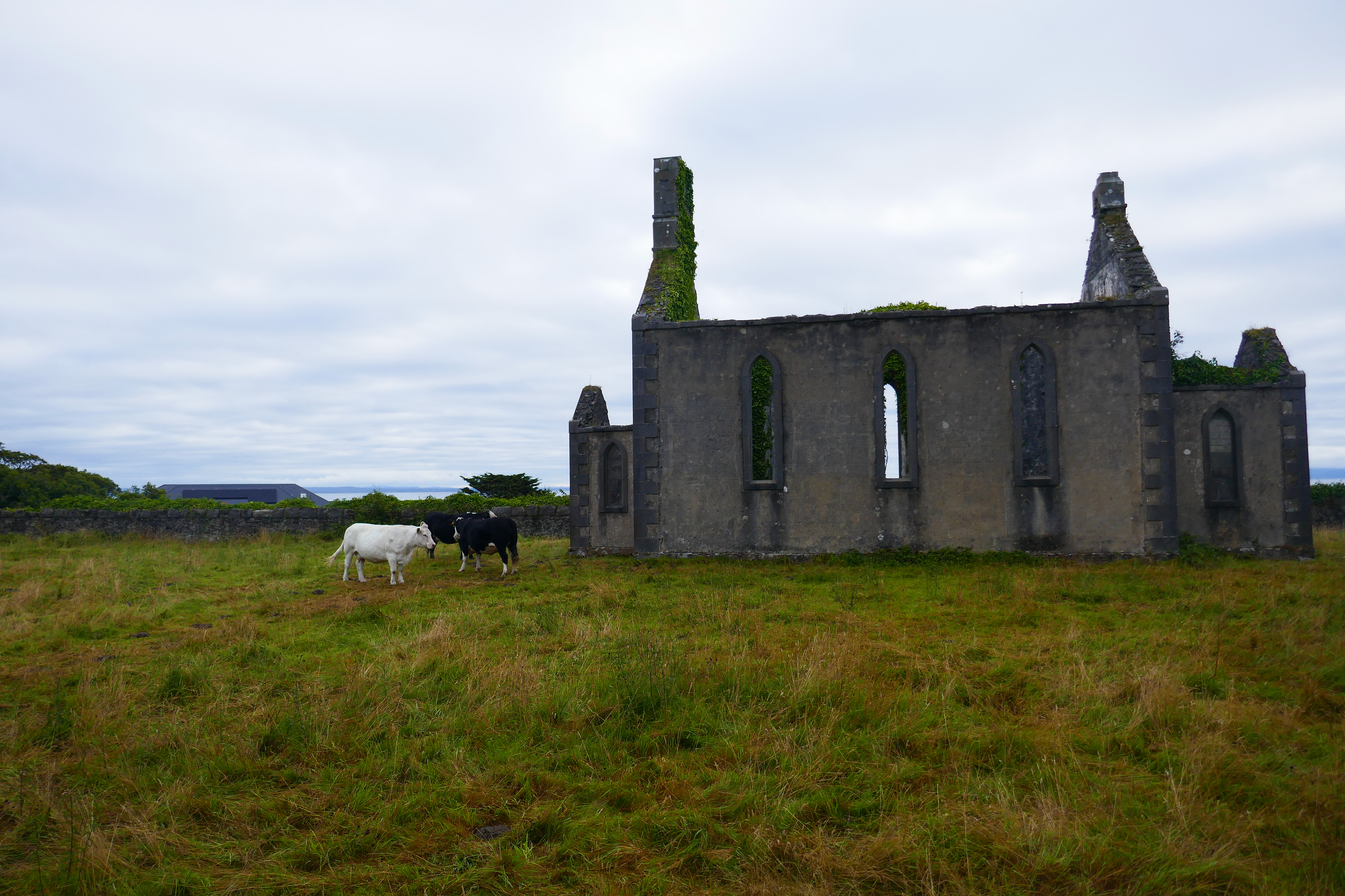 De verwoeste Abbey (natuurlijk die Engelsen weer!) annex begraafplaats met uitzicht op Donegal Bay, prachtig verstild.