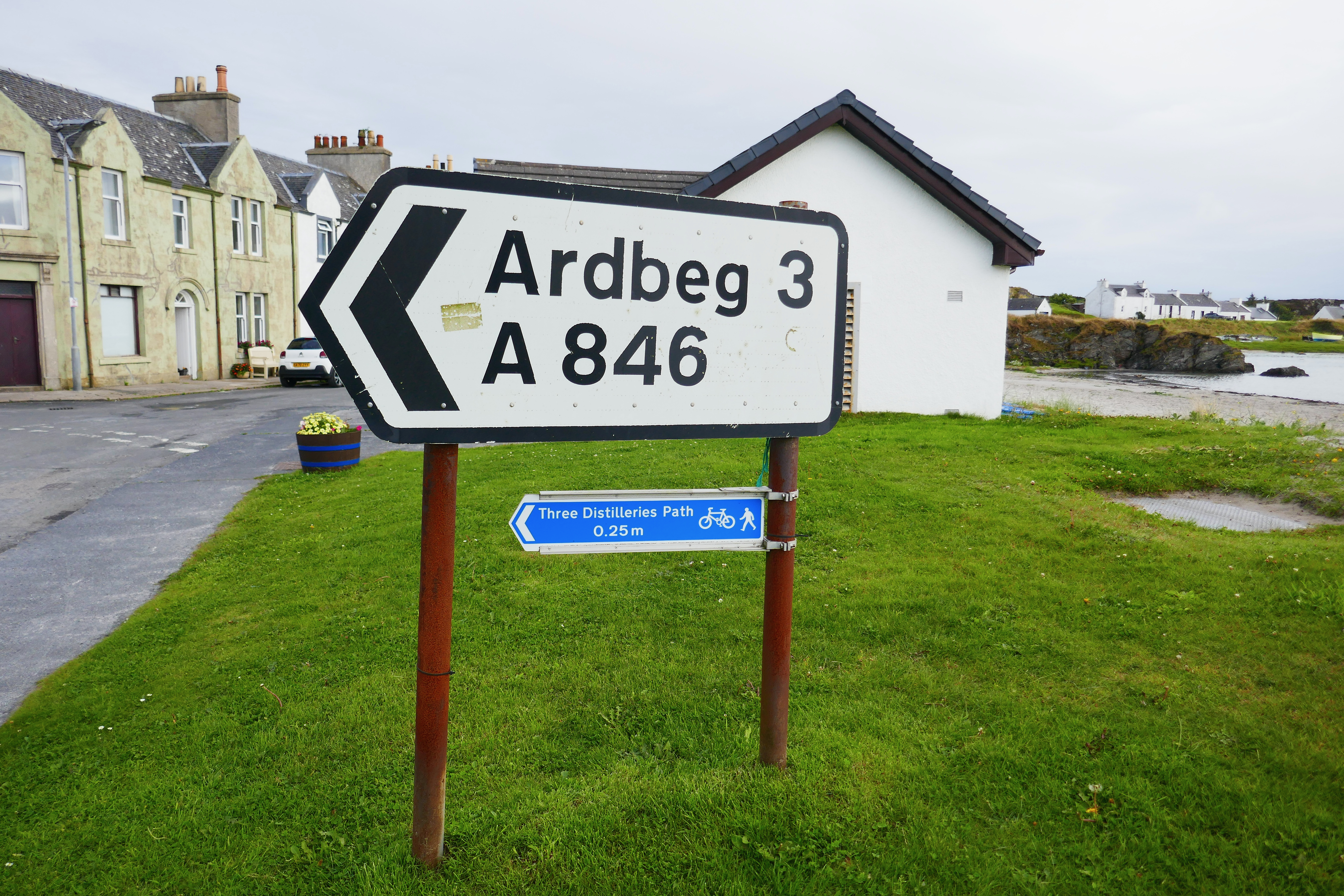 maar niets gekocht. Vlak voor Port Ellen (of Port Ilein): Laphroaig, opvallend dat de opslag zoveel groter lijkt dan Ardbeg.