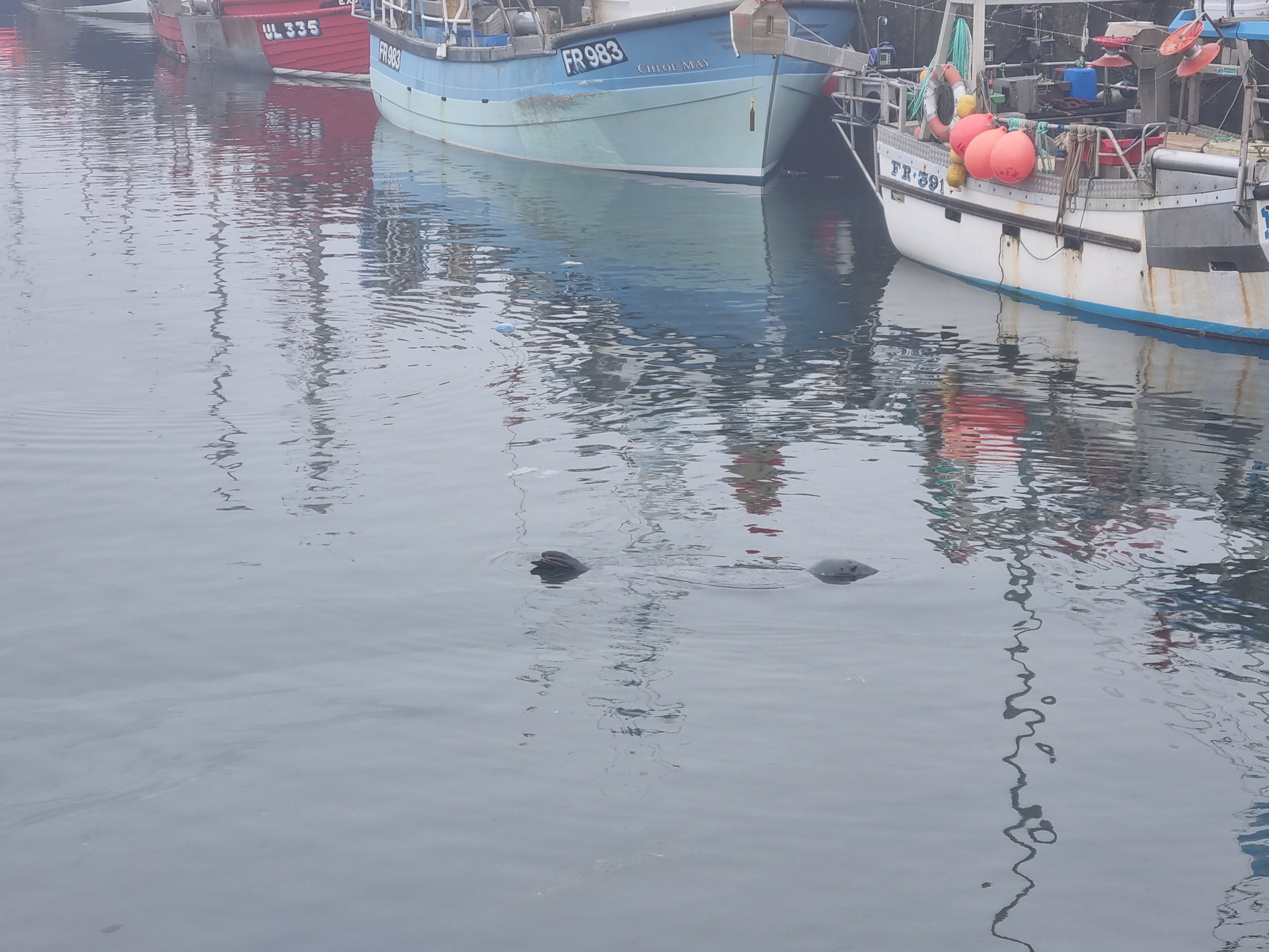Moest in de sluis nog een stuk naar voren om ruimte te maken voor een visser. Al met al een spectaculaire binnenkomst in de haven.
