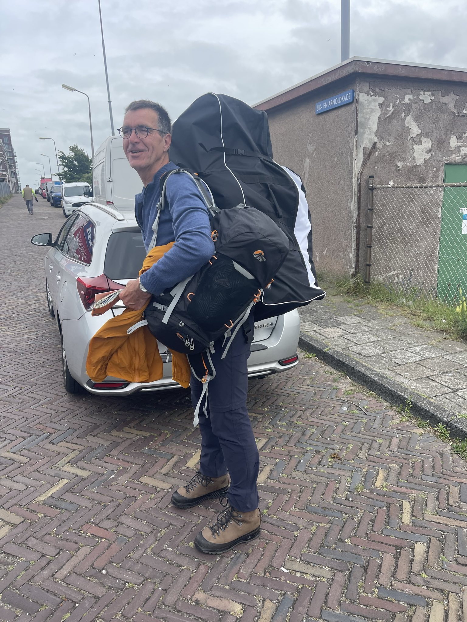 Miriam heeft de foto gemaakt van mij met de tender (de vervanger van de op 24 juli 2024 bij Gola verloren gegane voorganger)