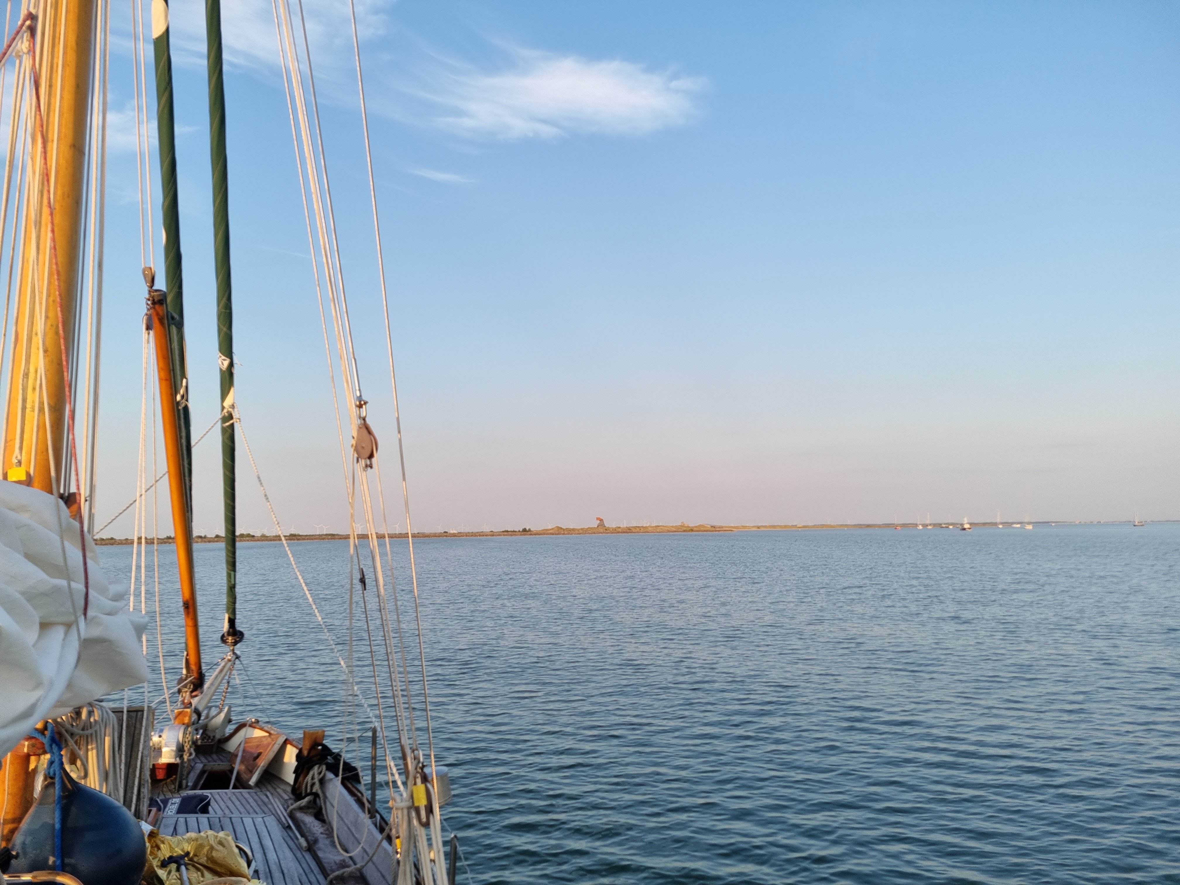 uit de goede hoek, alle zeilen gezet. Daarna het grootzeil meerdere keren gereefd, ontreefd, gestreken en weer gehezen, wat een bende werk!