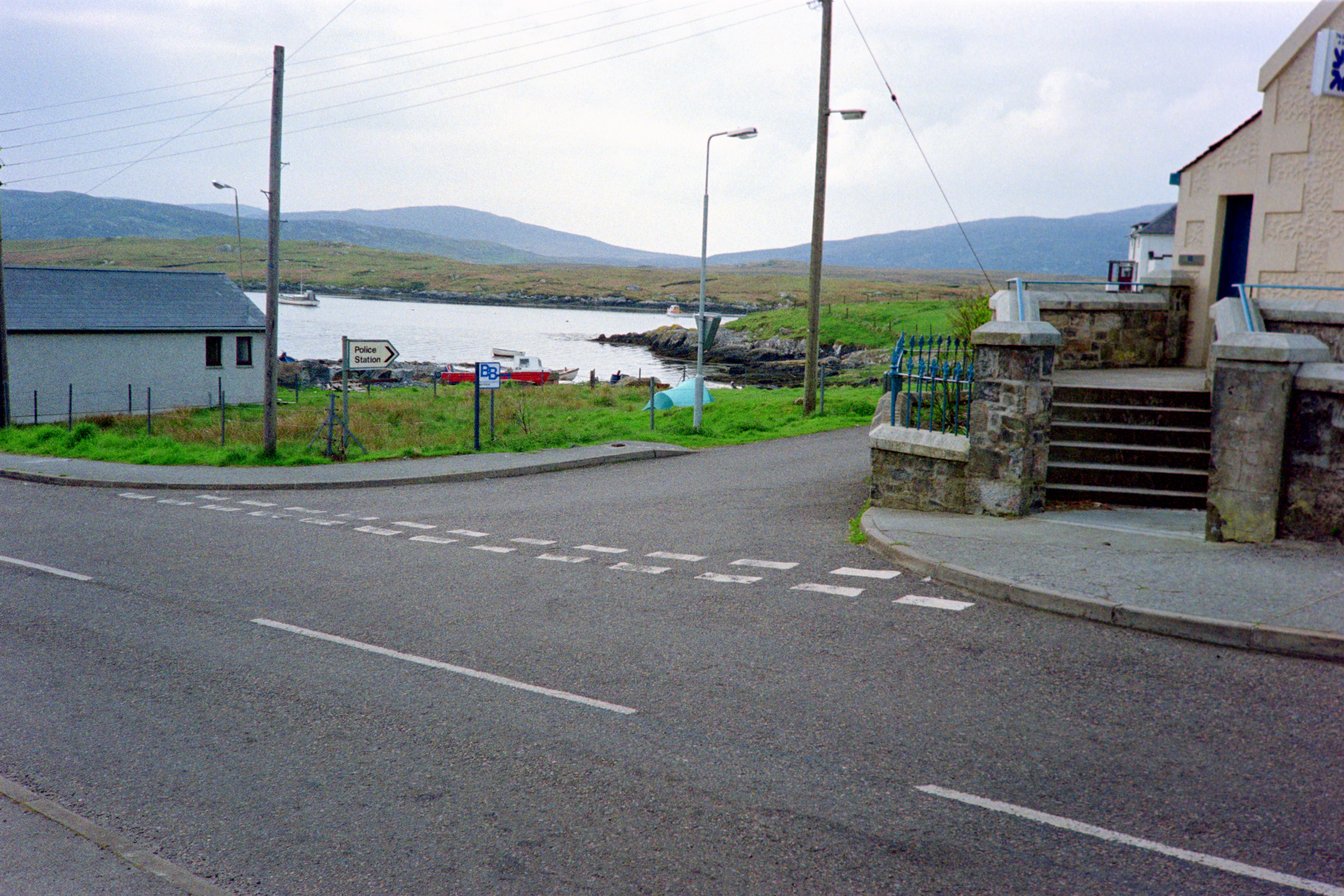35 jaar na het kamperen in de tuin van het politie bureau (zie foto van zaterdag 12 mei 1990) van Lochboisdale op South Uist, ga ik eens kijken hoe het er nu uitziet.